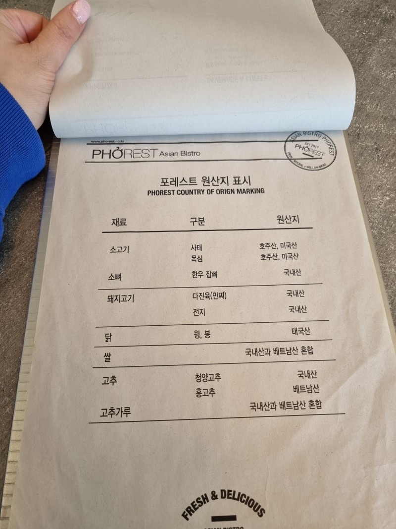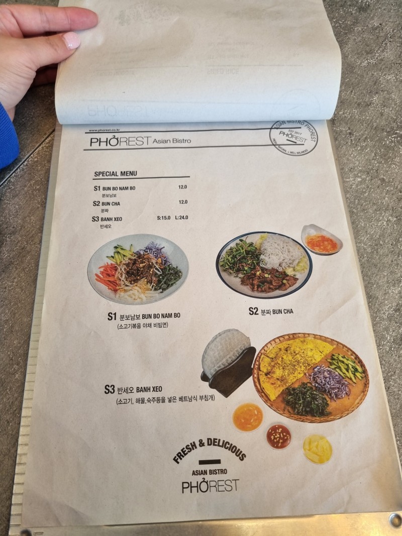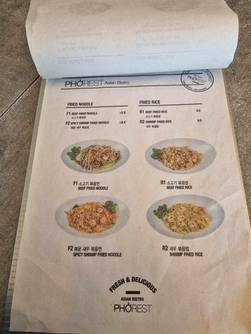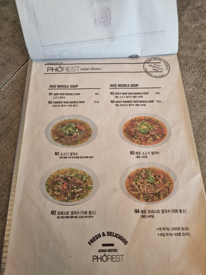 메뉴에서 저희가 추천 받은 것은 포레스트 쌀국수 (직화) 였어요.