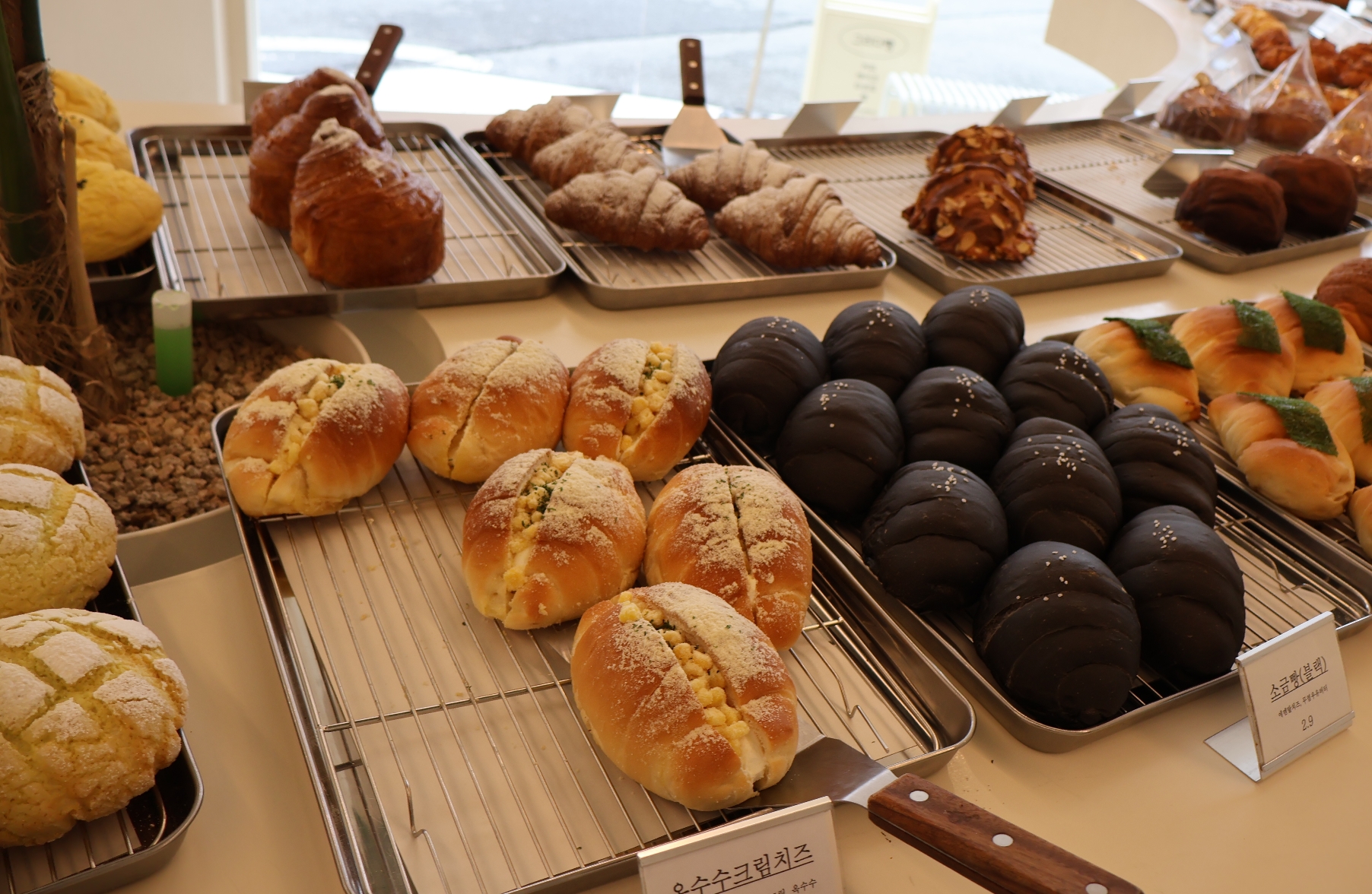 소금빵과 크로와상도 종류도 많고 윤기나는 피자빵과 깜빠뉴도 종류가 다양해요!!고구마.무화과.감자 등등~^^
